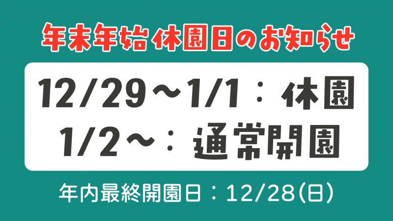 2025年12月29日(月)~2026年1月1日(木)の期間は休園します。